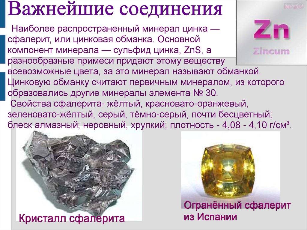 Важнейшие соединенияНаиболее распространенный минерал цинка —