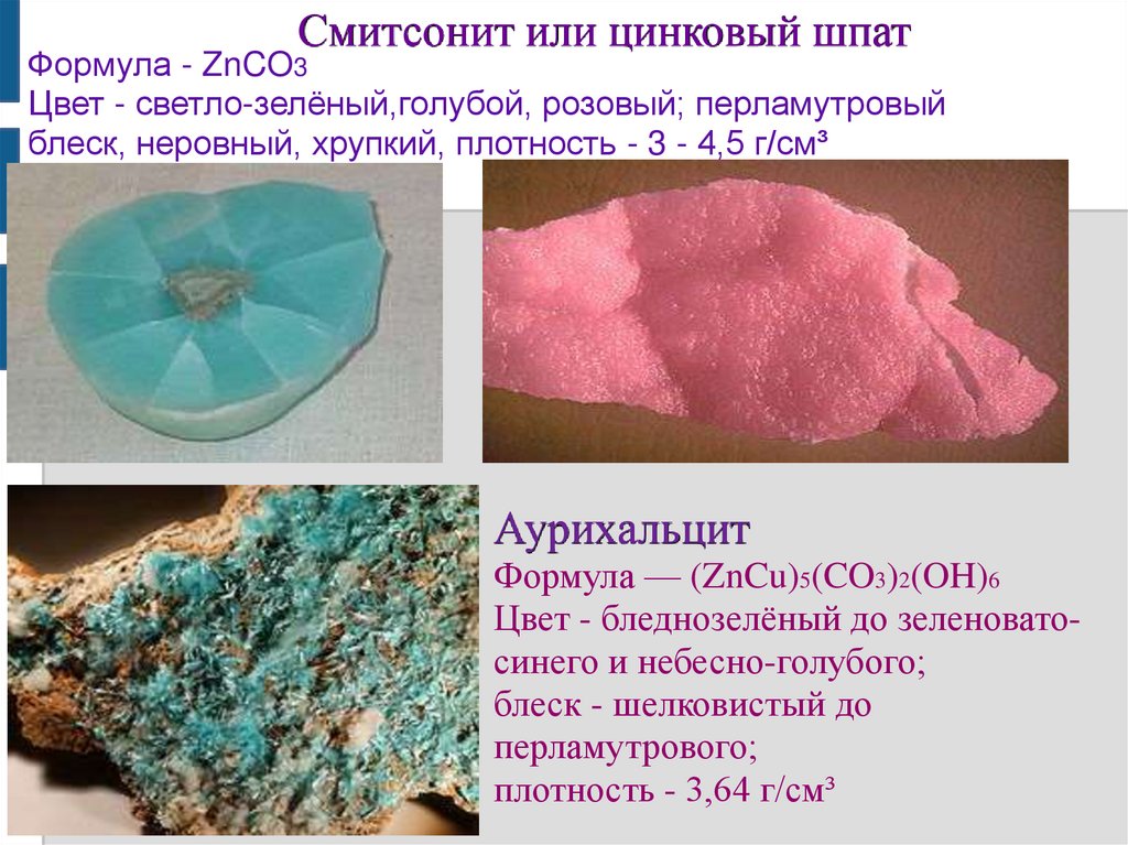 Смитсонит или цинковый шпатФормула - ZnCO3
