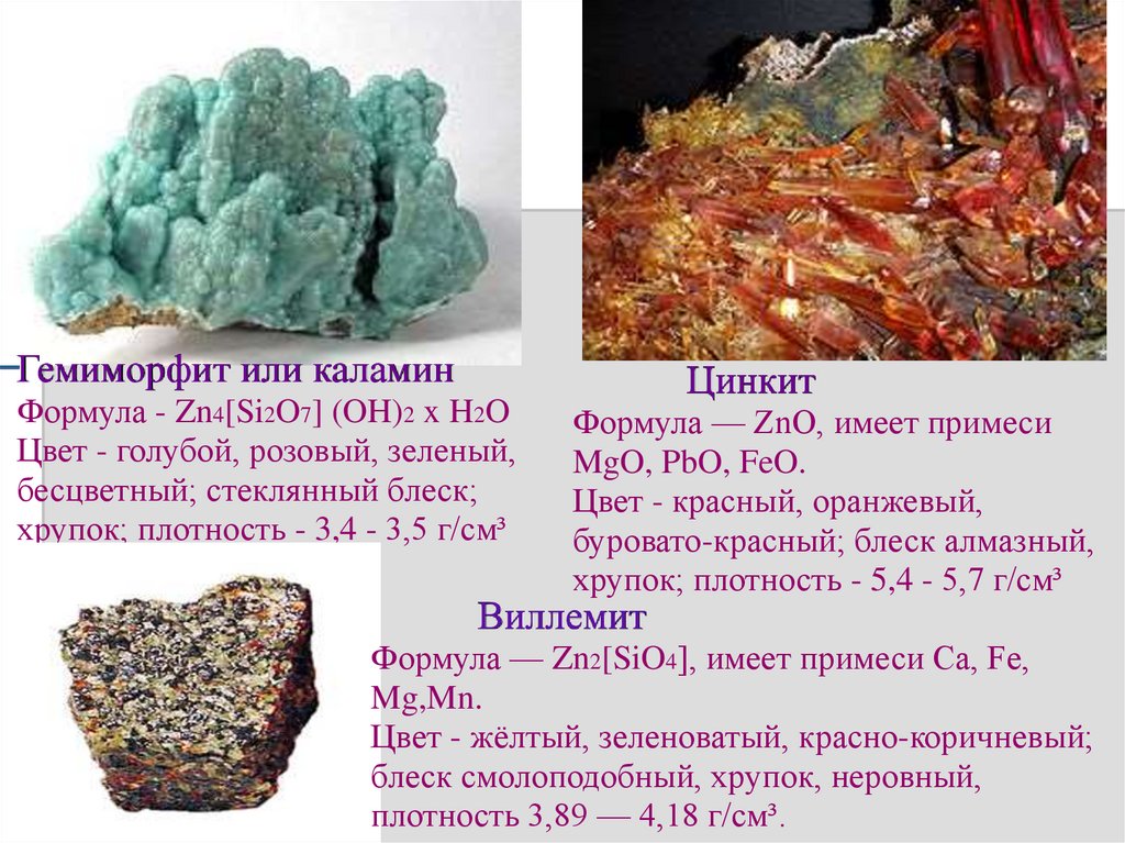 образовались другие минералы элемента № 30.