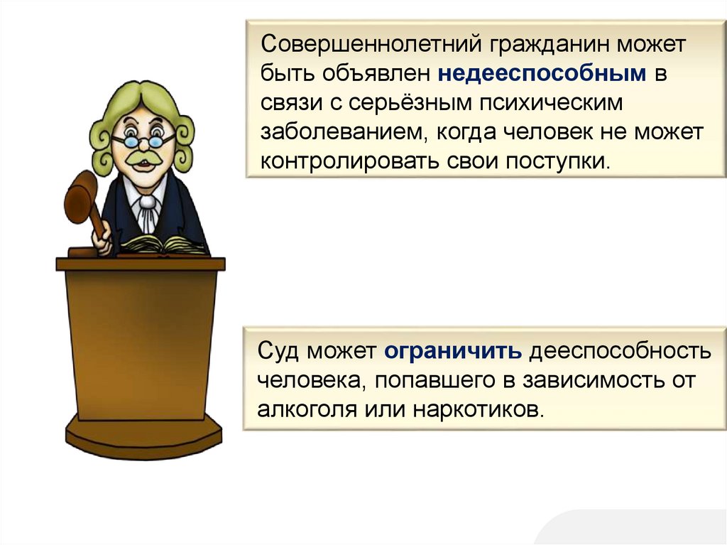 Совершеннолетний гражданин можетбыть объявлен недееспособным в