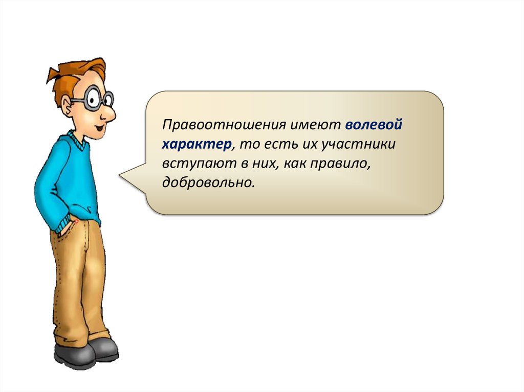 Правоотношения имеют волевойхарактер, то есть их участники