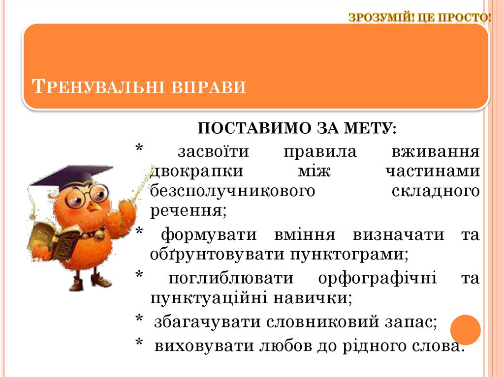 ТРЕНУВАЛЬНІ ВПРАВИПОСТАВИМО ЗА МЕТУ: