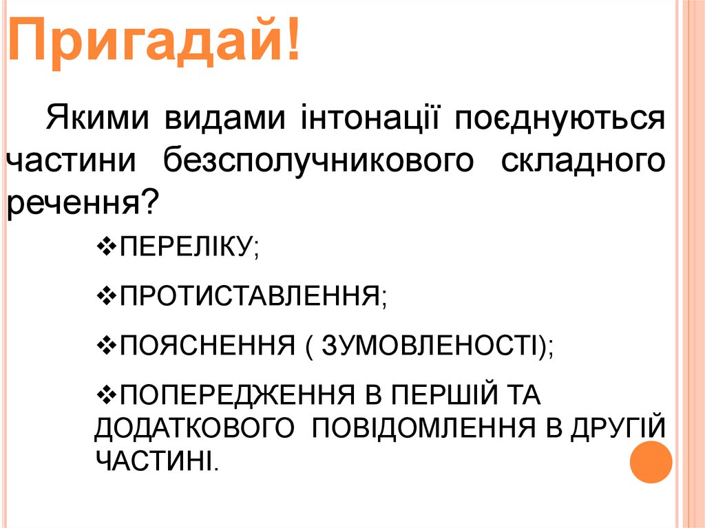 Пригадай!Якими видами інтонації поєднуються