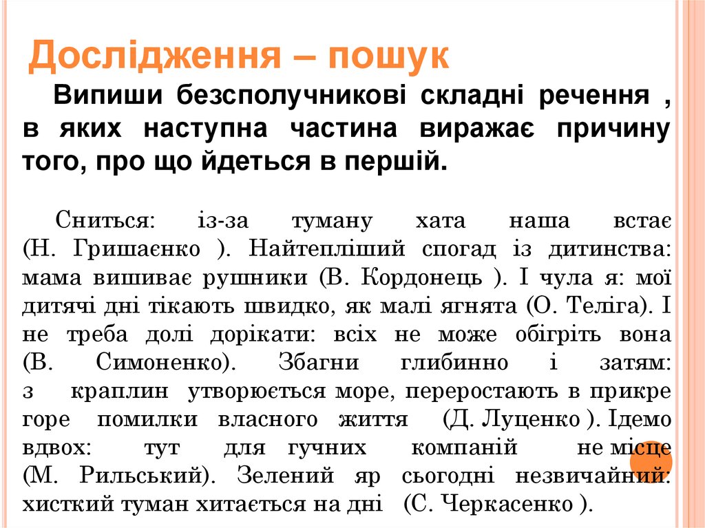 Дослідження – пошукВипиши безсполучникові складні речення ,