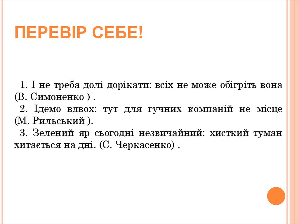 ПЕРЕВІР СЕБЕ!1. І не треба долі дорікати: всіх не може обігріть вона