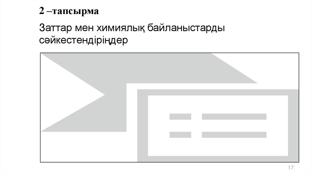 2 –тапсырмаЗаттар мен химиялық байланыстарды