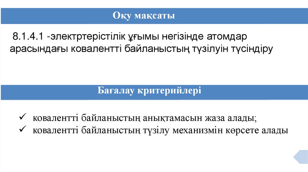 Оқу мақсаты8.1.4.1 -электртерістілік ұғымы негізінде атомдар