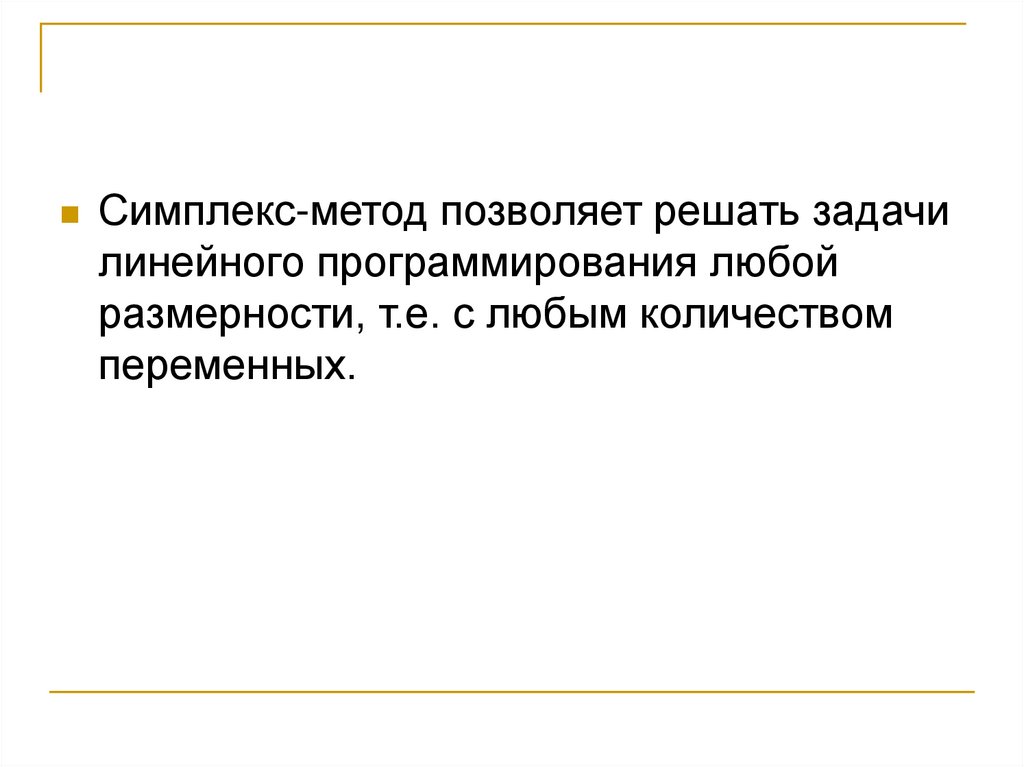 Симплекс-метод позволяет решать задачилинейного программирования любой