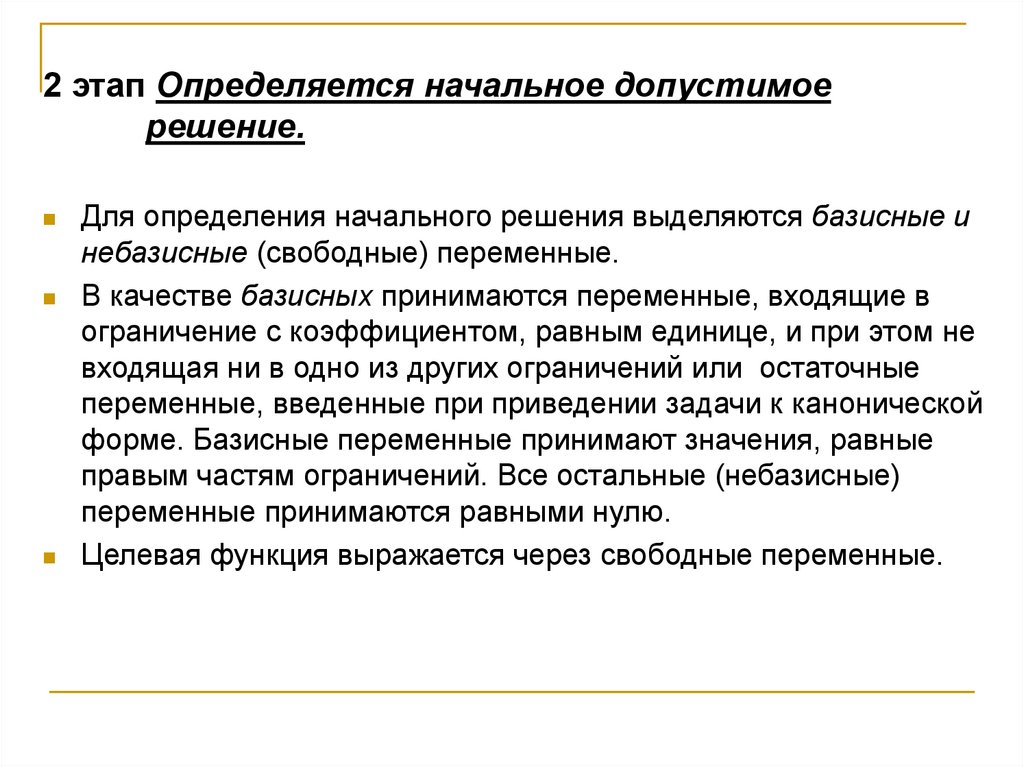 1 этап. Задача линейного программирования приводится кканонической форме.