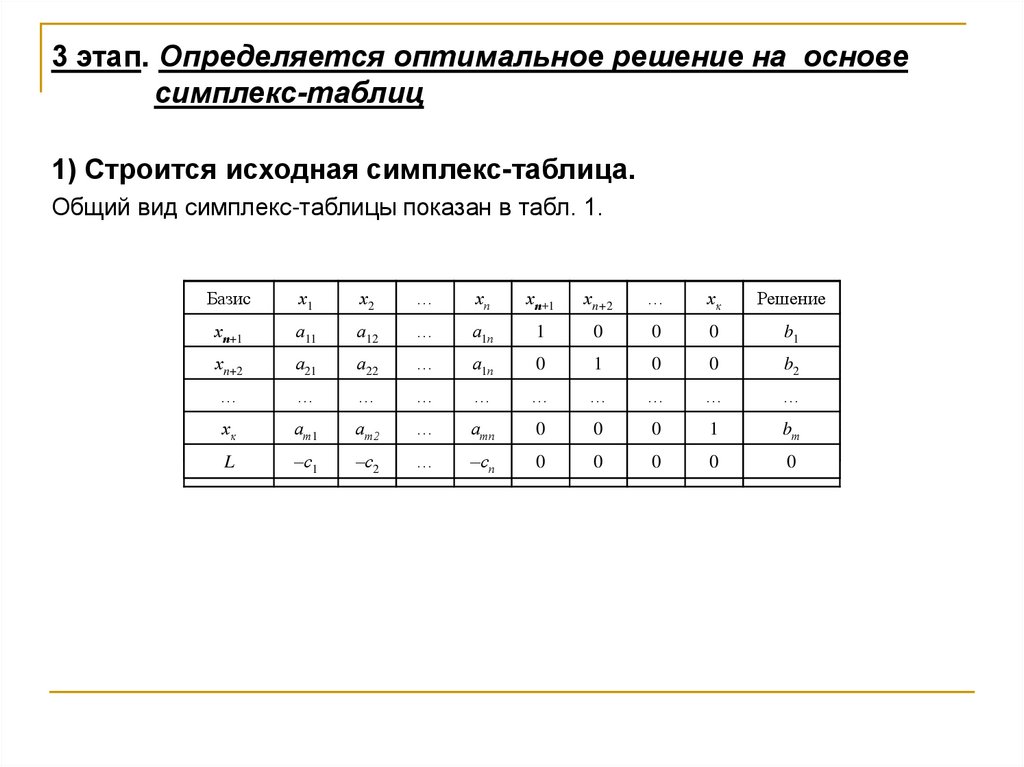 3 этап. Определяется оптимальное решение на основесимплекс-таблиц
