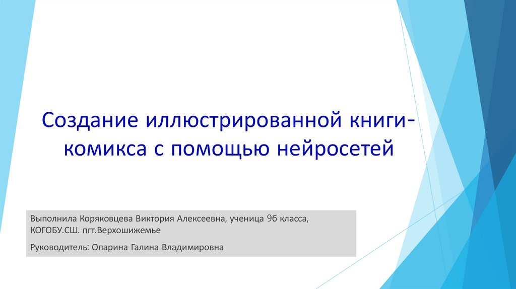 Создание иллюстрированной книгикомикса с помощью нейросетейВыполнила Коряковцева Виктория Алексеевна, ученица 9б класса,