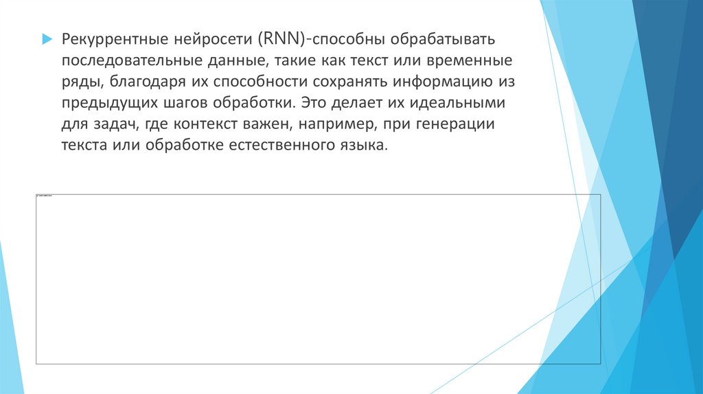 Рекуррентные нейросети (RNN)-способны обрабатыватьпоследовательные данные, такие как текст или временные
