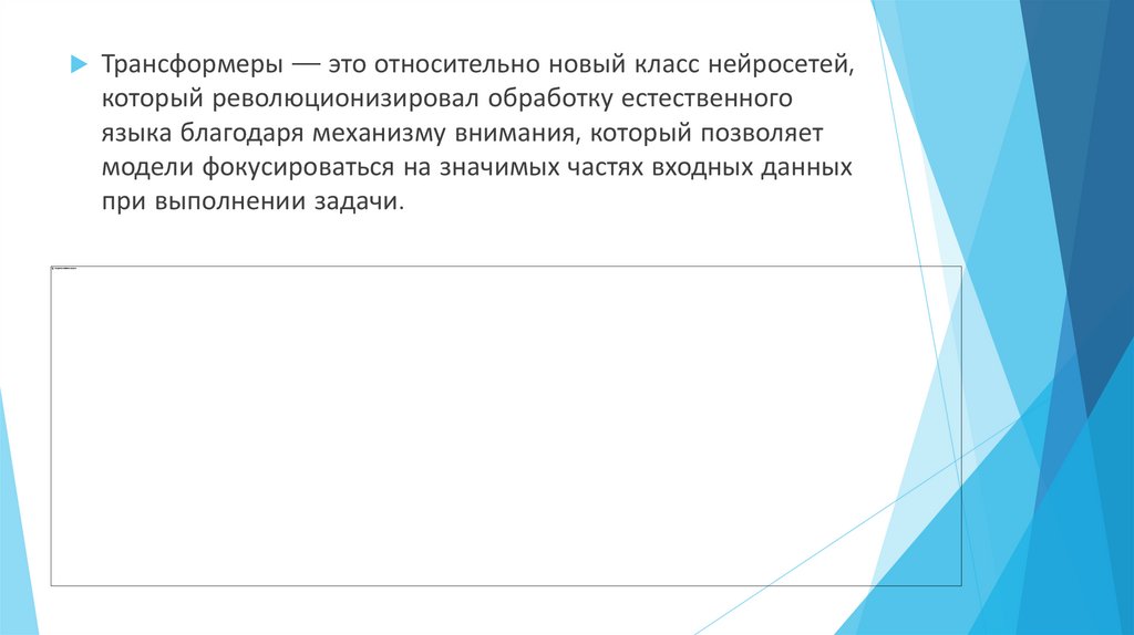 Трансформеры — это относительно новый класс нейросетей,который революционизировал обработку естественного
