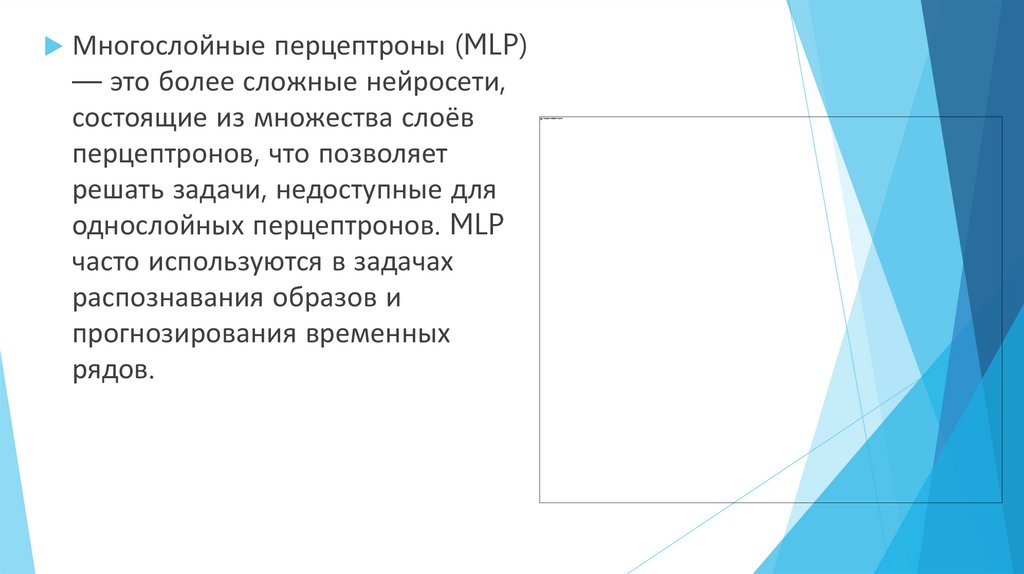 Многослойные перцептроны (MLP)— это более сложные нейросети,