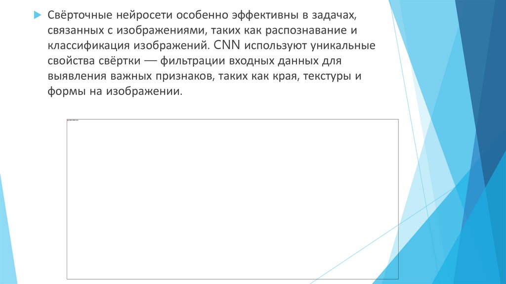 Свёрточные нейросети особенно эффективны в задачах,связанных с изображениями, таких как распознавание и