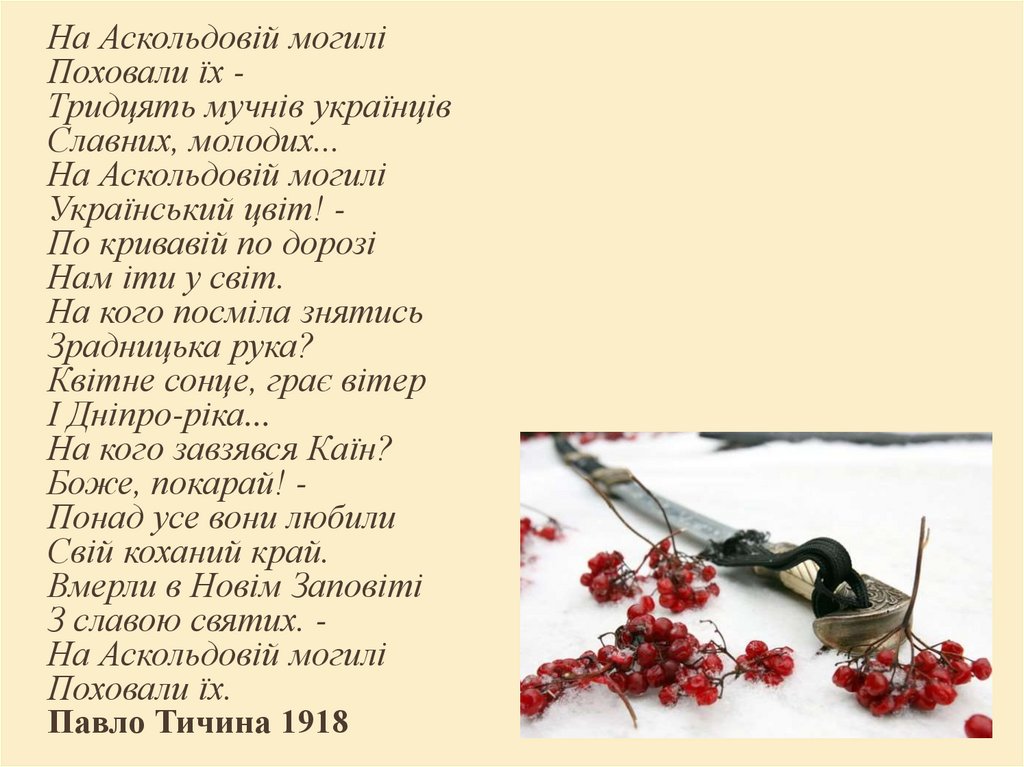 боротьбі, героями, а поет Павло Тичина