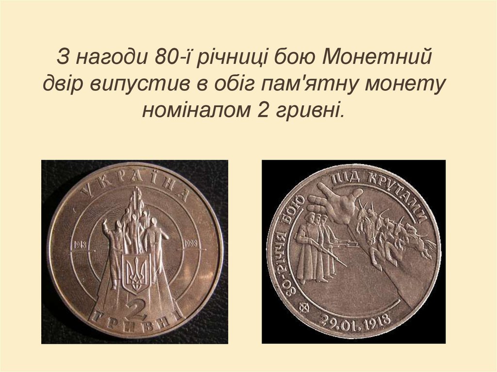 З нагоди 80-ї річниці бою Монетнийдвір випустив в обіг пам'ятну монету