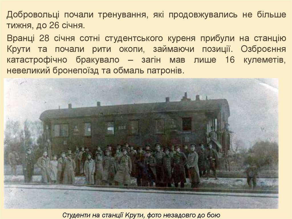 Вранці 28 січня сотні студентського куреня прибули на станцію