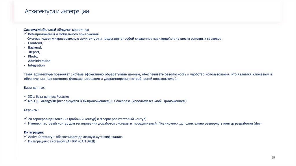 Архитектура и интеграцииСистема Мобильный обходчик состоит из: