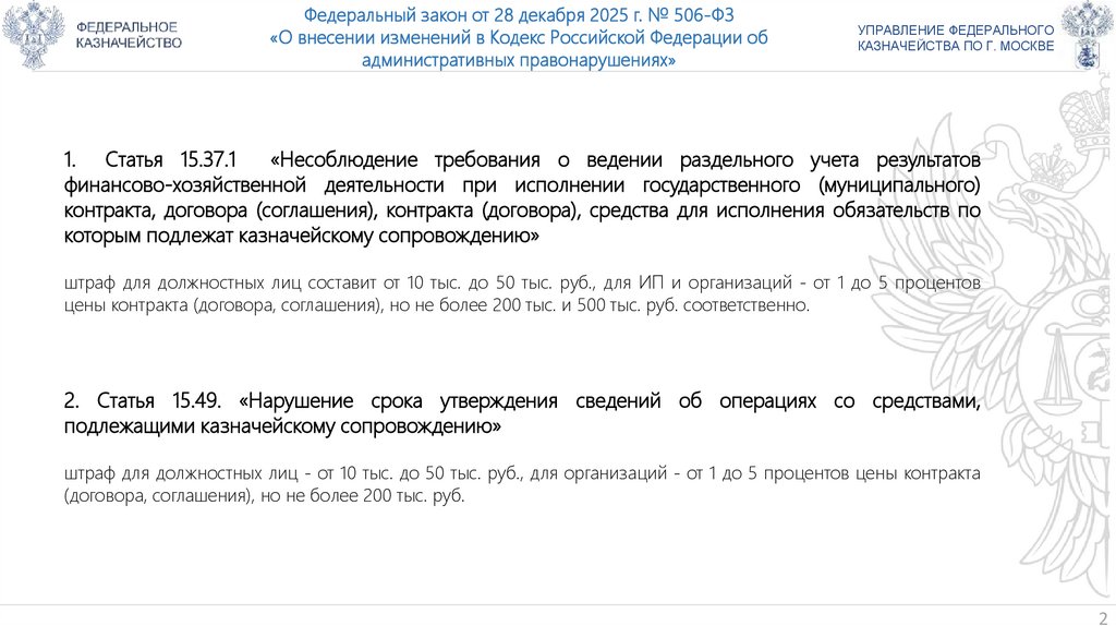 предусмотренных ст. 15.37.1 КоАП за нарушение требования о ведении раздельного учета результатов КАЗНАЧЕЙСТВА ПО Г. МОСКВЕ