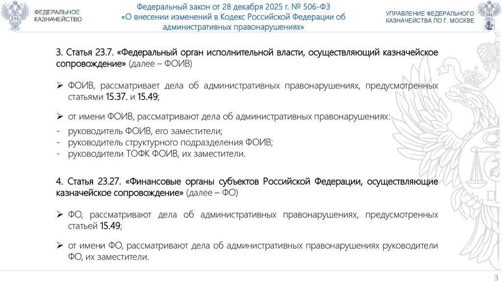 3. Статья 23.7. «Федеральный орган исполнительной власти, осуществляющий казначейское