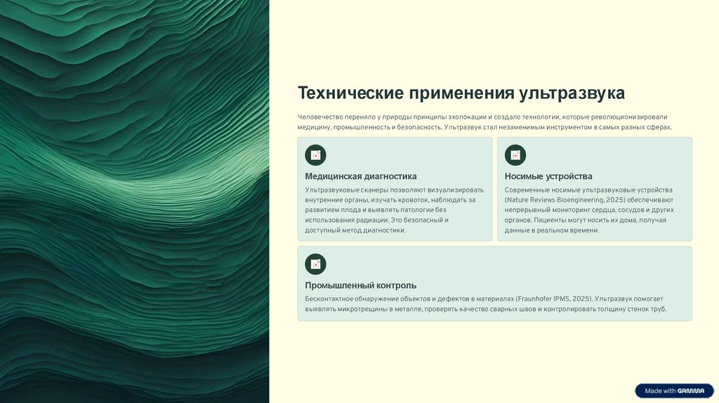 медицину, промышленность и безопасность. Ультразвук стал незаменимым инструментом в самых разных сферах.