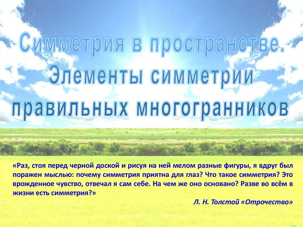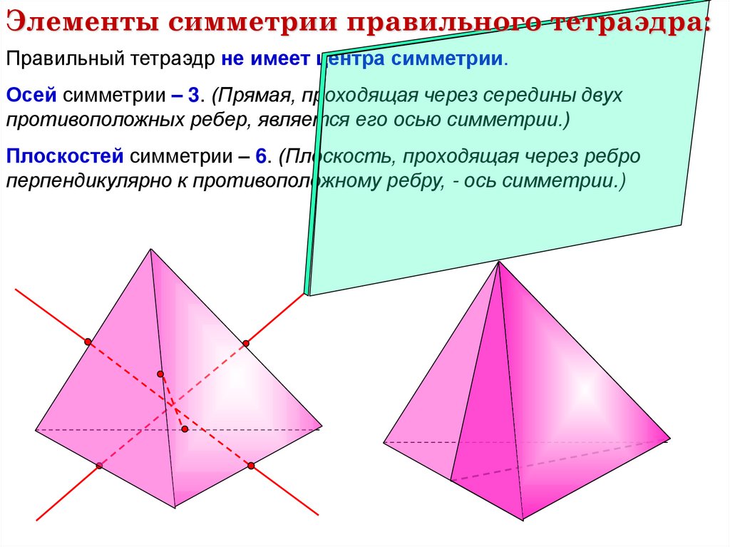 лекция Понятие о симметрии в пространстве (центральная, осевая, зеркальная). Обобщение представлений о правильных многогранниках (тетра