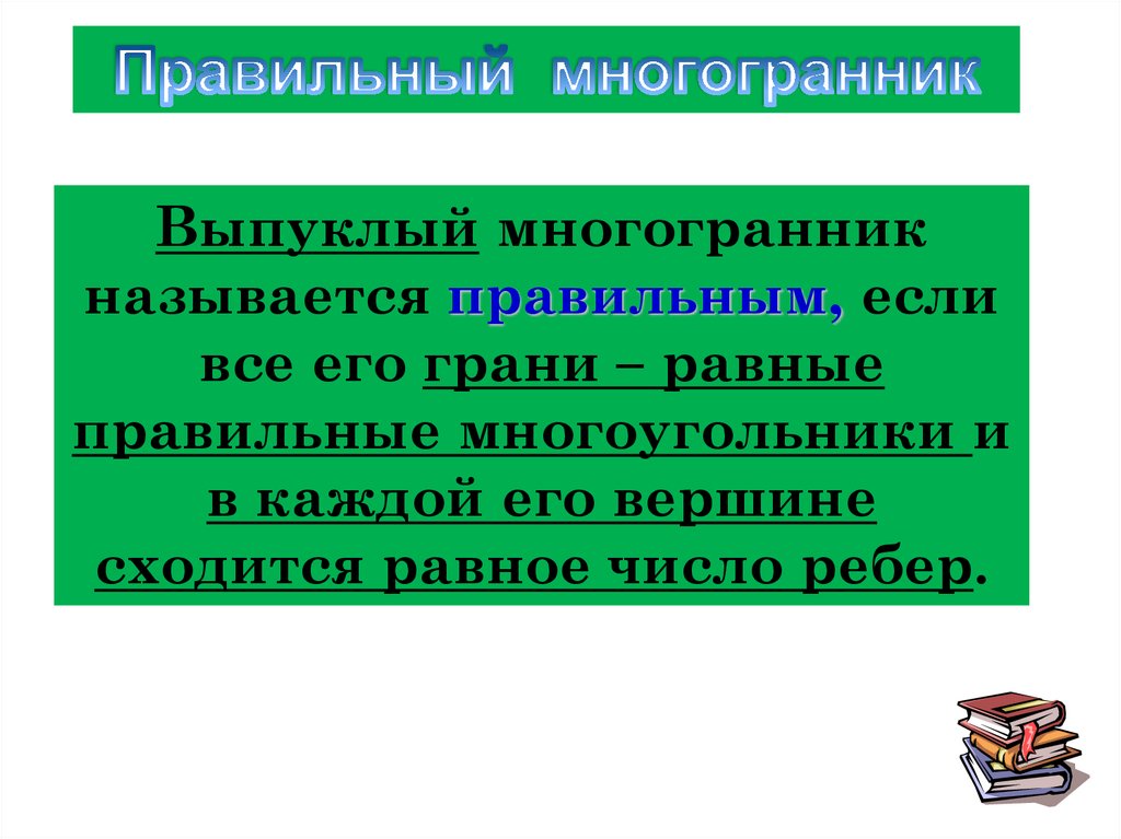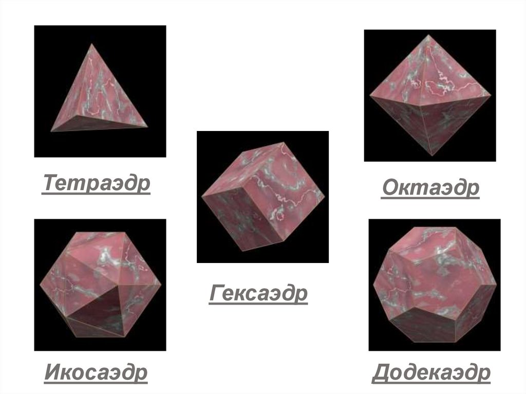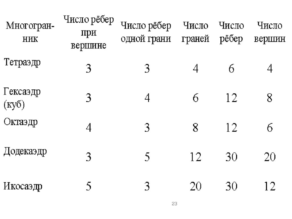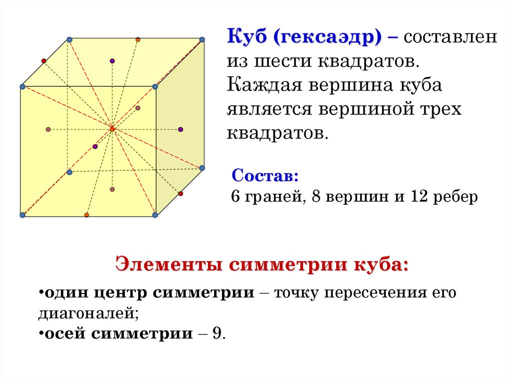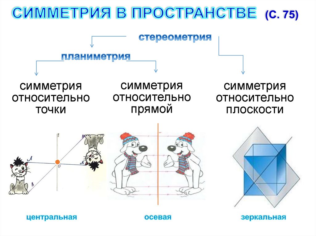 1. Понятие о симметрии в пространстве (центральная, осевая, зеркальная). Обобщение представлений о правильных многогранниках