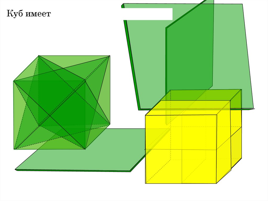 Плоскостей симметрии – 6. (Плоскость, проходящая через ребро