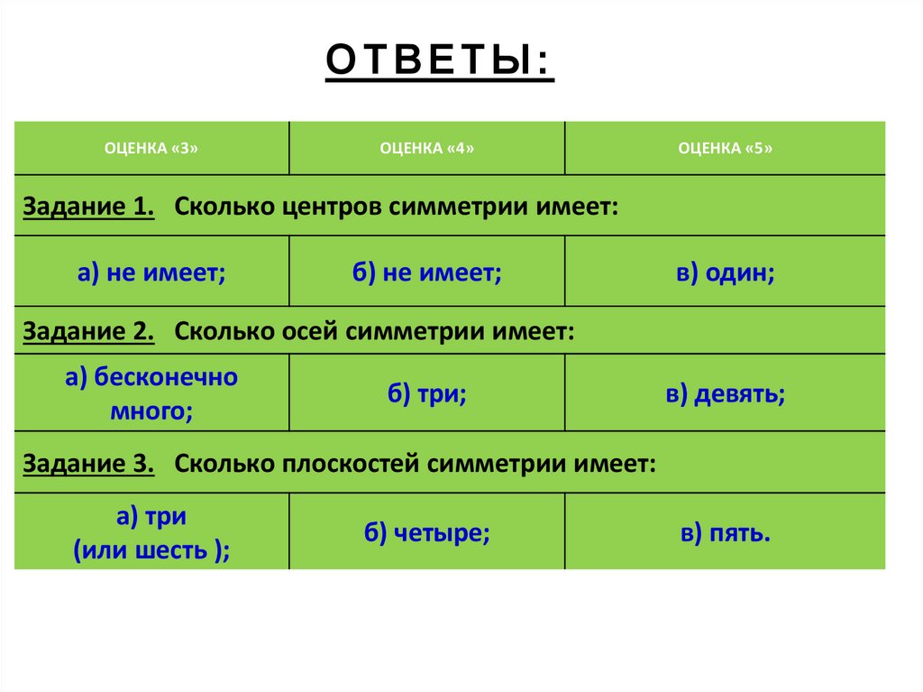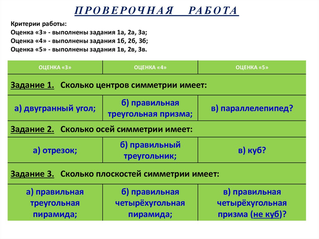Оценка «5» - выполнены задания 1в, 2в, 3в.