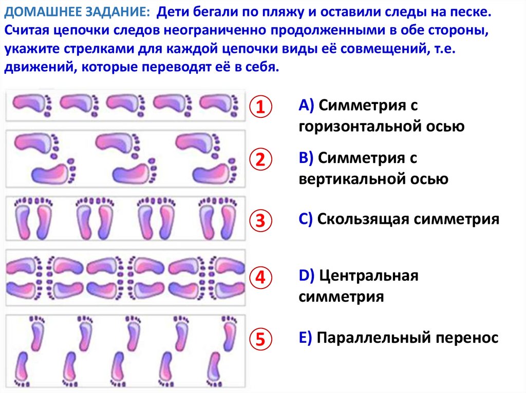 ДОМАШНЕЕ ЗАДАНИЕ: Дети бегали по пляжу и оставили следы на песке.Считая цепочки следов неограниченно продолженными в обе стороны,