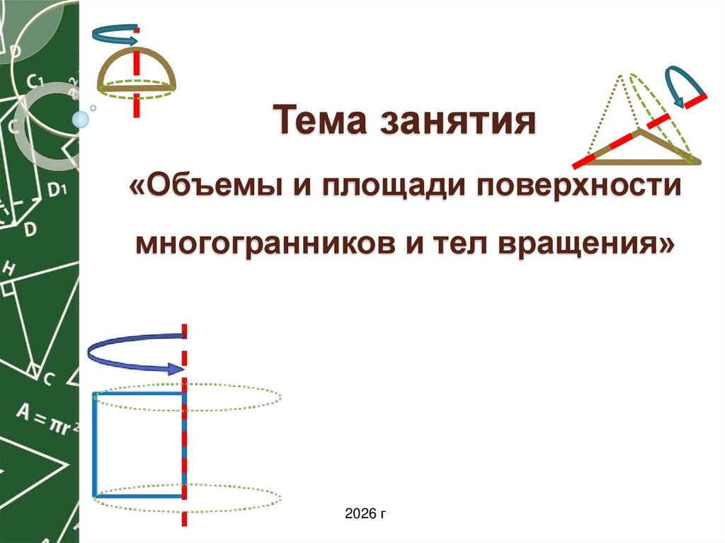 1. Тема занятия «Объемы и площади поверхности многогранников и тел вращения»