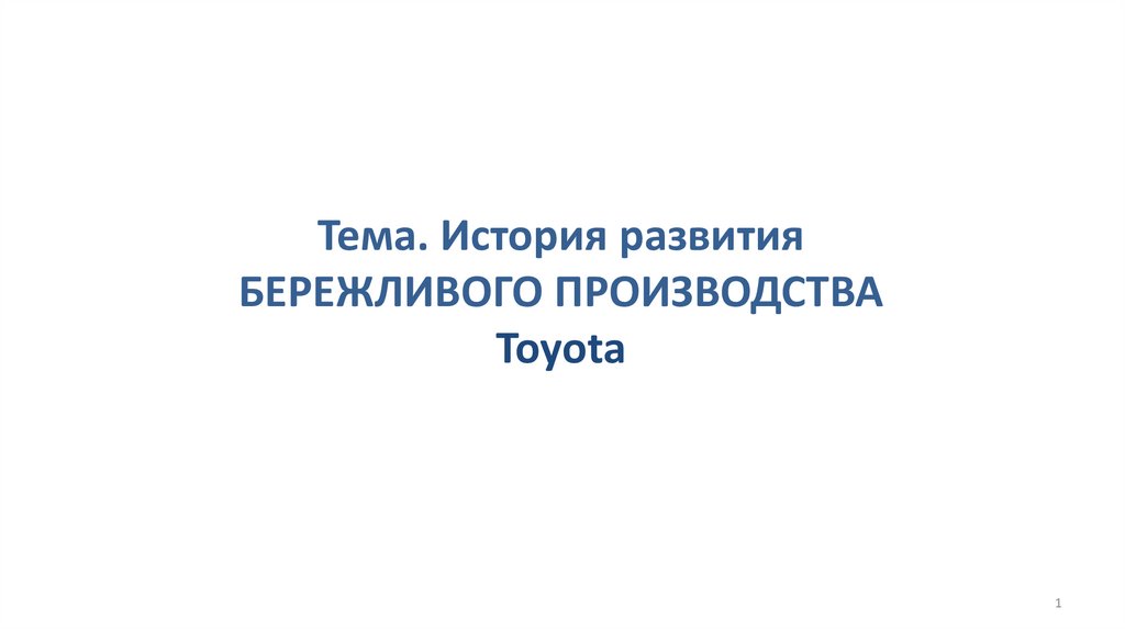 1. Тема. История развития БЕРЕЖЛИВОГО ПРОИЗВОДСТВА Toyota