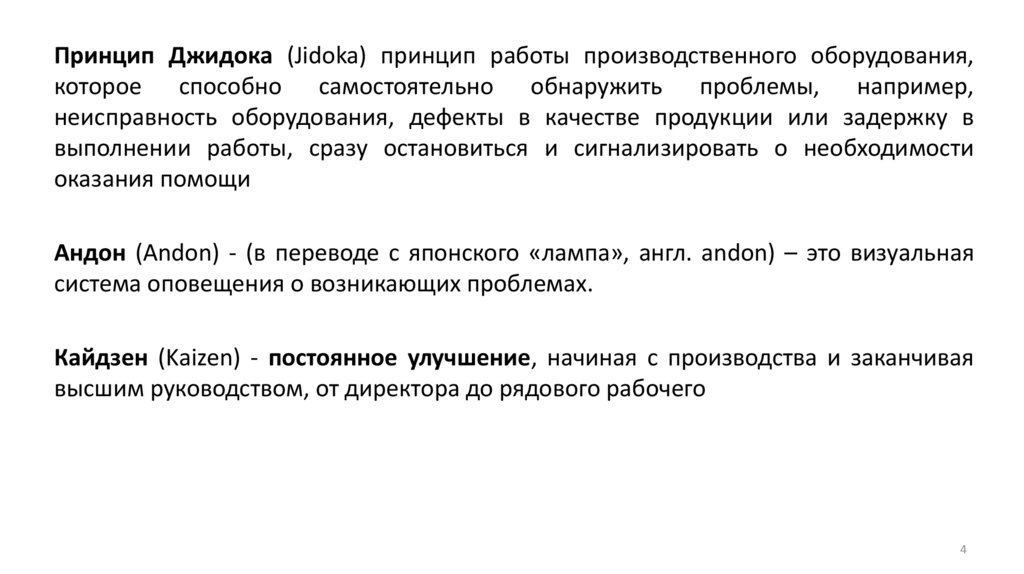 Принцип Джидока (Jidoka) принцип работы производственного оборудования,которое способно самостоятельно обнаружить проблемы, например,