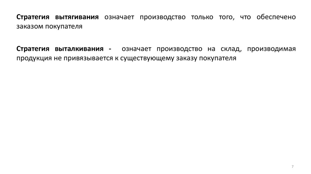 Стратегия вытягивания означает производство только того, что обеспеченозаказом покупателя