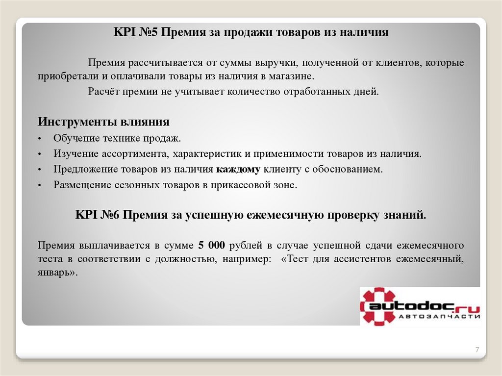 KPI №6 Премия за успешную ежемесячную проверку знаний.