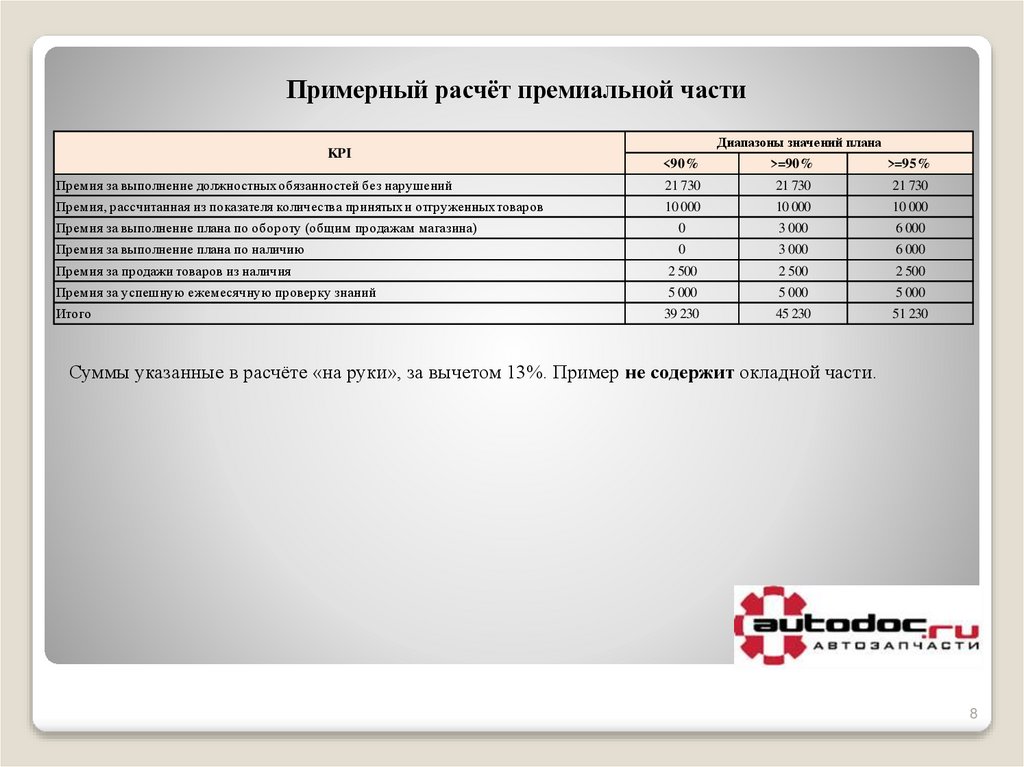 Примерный расчёт премиальной частиKPI