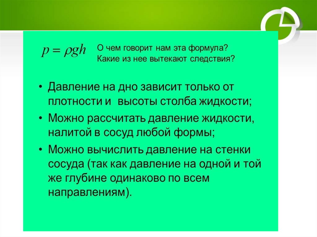12. От чего зависит давление жидкости?