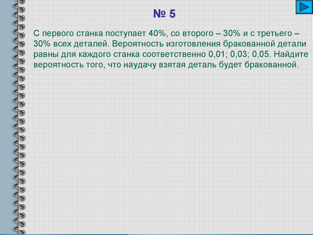 №5С первого станка поступает 40%, со второго – 30% и с третьего –