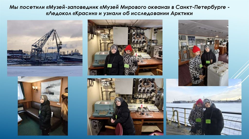 Мы посетили «Музей-заповедник «Музей Мирового океана» в Санкт-Петербурге «Ледокол «Красин» и узнали об исследовании Арктики6.