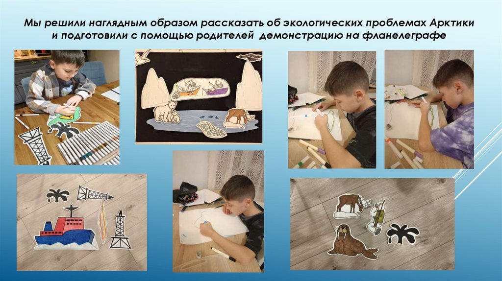 Мы решили наглядным образом рассказать об экологических проблемах Арктикии подготовили с помощью родителей демонстрацию на фланелеграфе