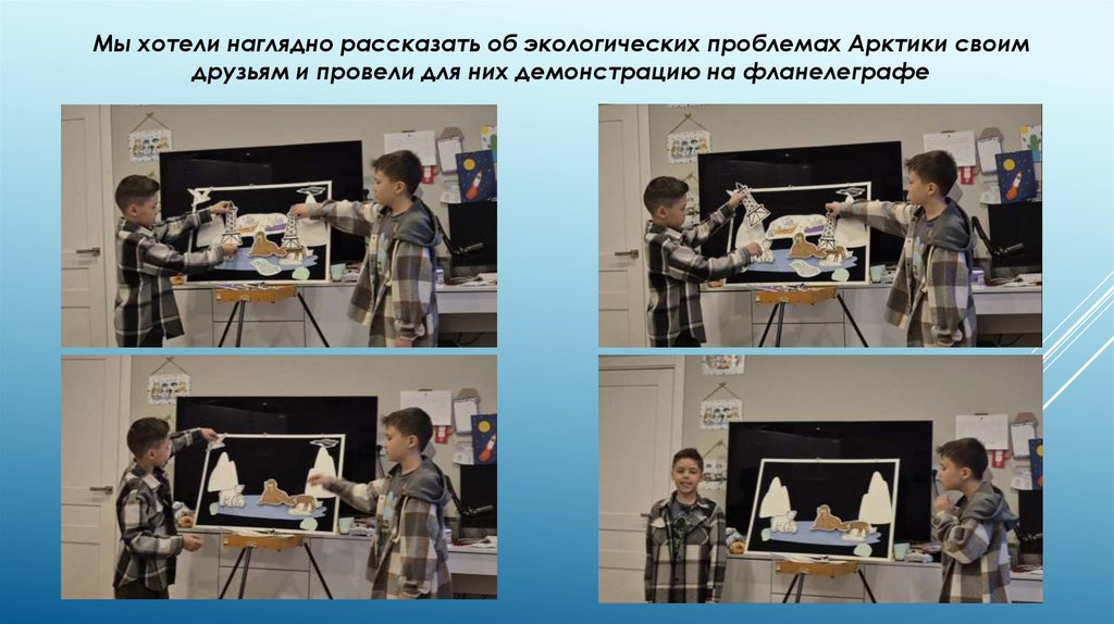 Мы хотели наглядно рассказать об экологических проблемах Арктики своимдрузьям и провели для них демонстрацию на фланелеграфе