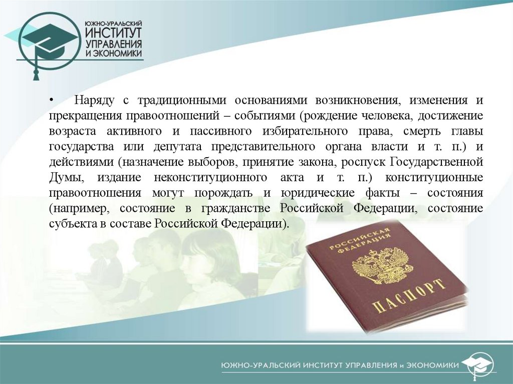 правоотношения могут порождать и юридические факты – состояния