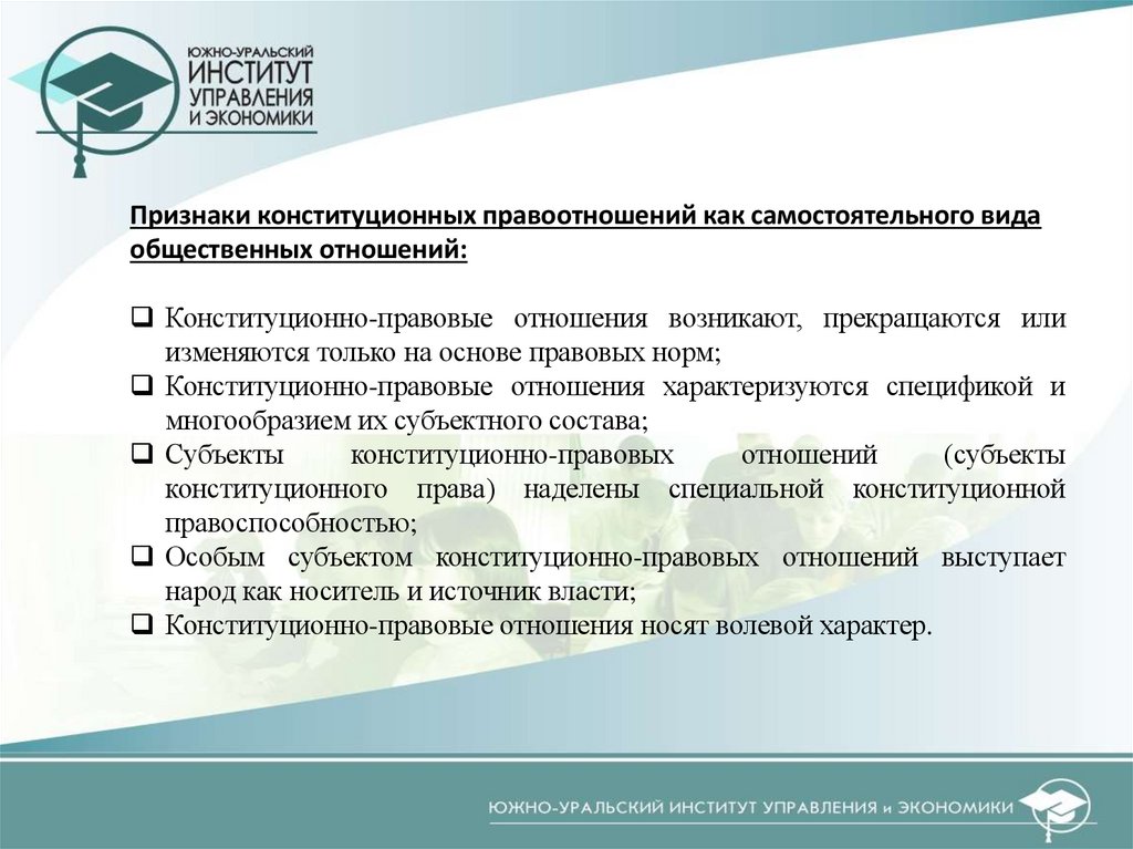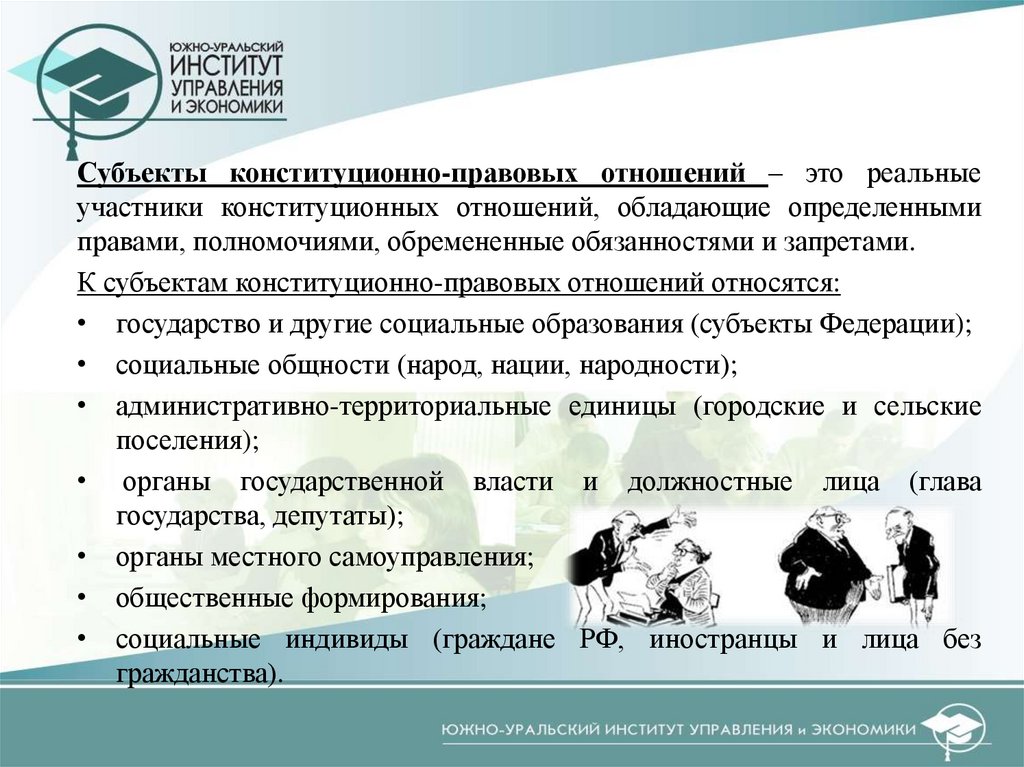 регулируемые конституционным правом. Участники этих