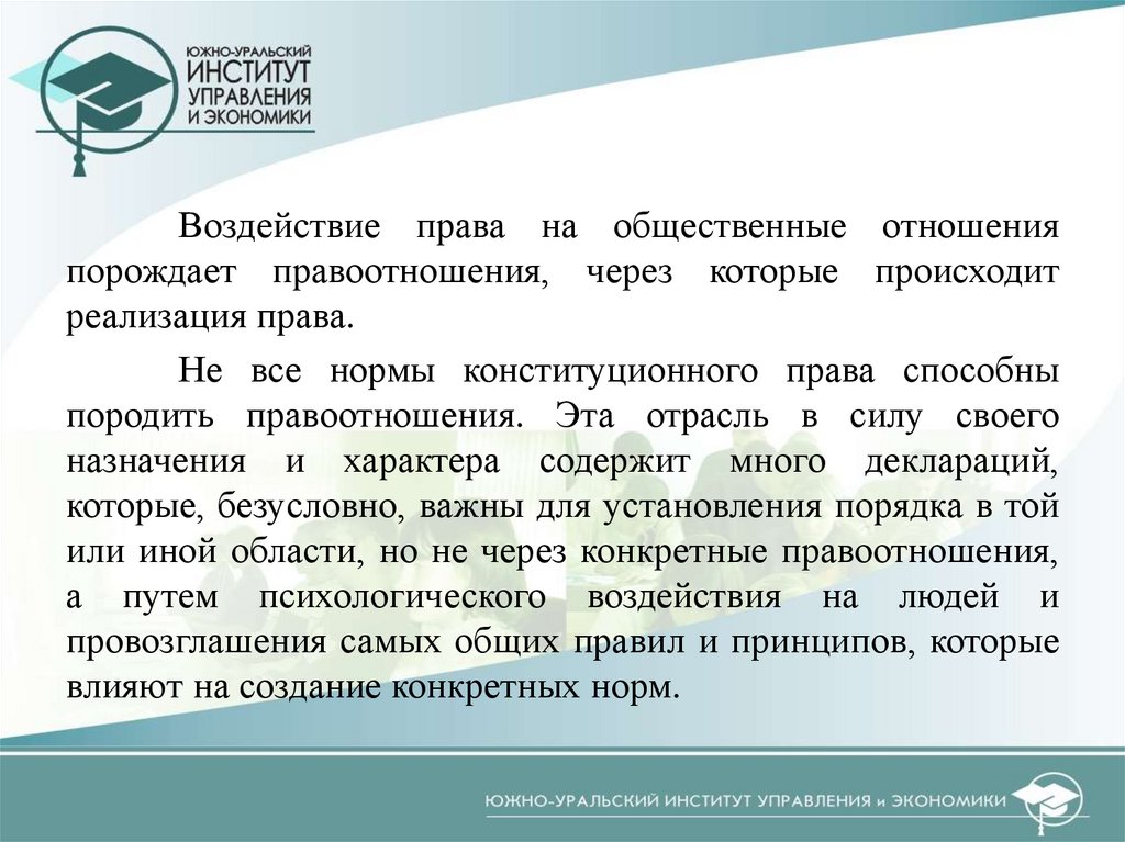 конституционно-правовых отношений конституционноправовые нормы претворяются в жизнь, и конституционное