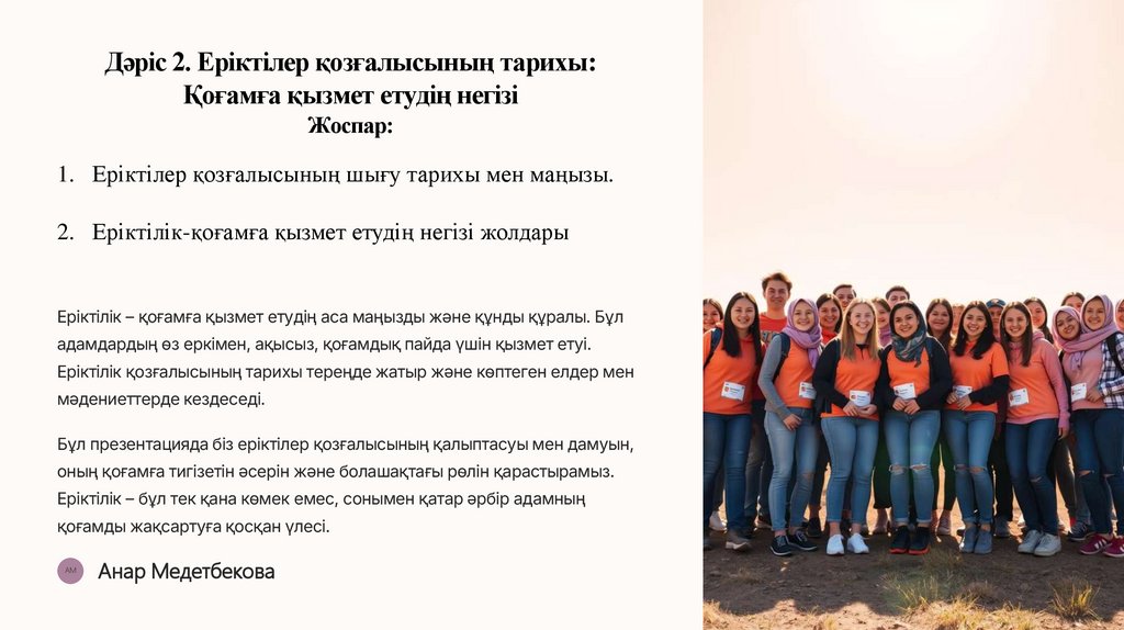 Бұл презентацияда біз еріктілер қозғалысының қалыптасуы мен дамуын,