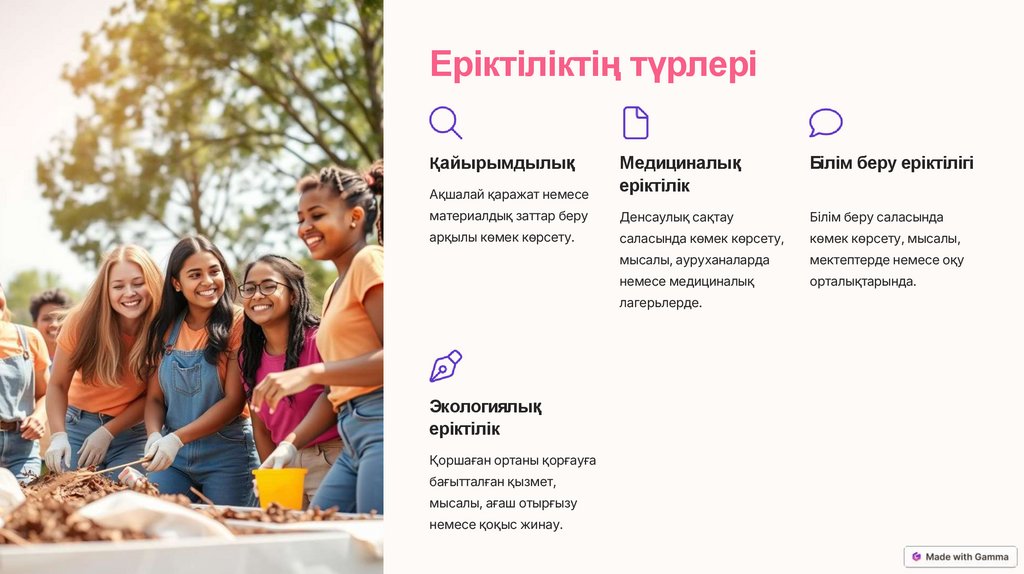 Еріктілік сізге қоғамға нақты пайда келтіруге және әлемді жақсартуға мүмкіндік береді.