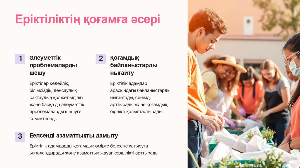 Ерікті болудың артықшылықтарыҚоғамға пайда келтіру
