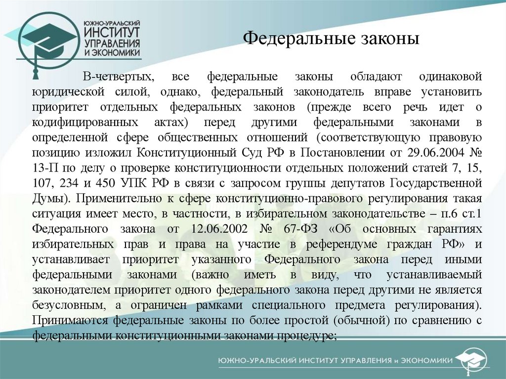 Федеральные законыВ-четвертых, все федеральные законы обладают одинаковой