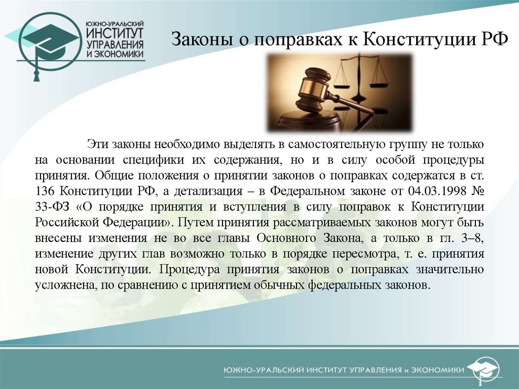 закон, дополняющий и развивающий действующую Конституцию РФ по